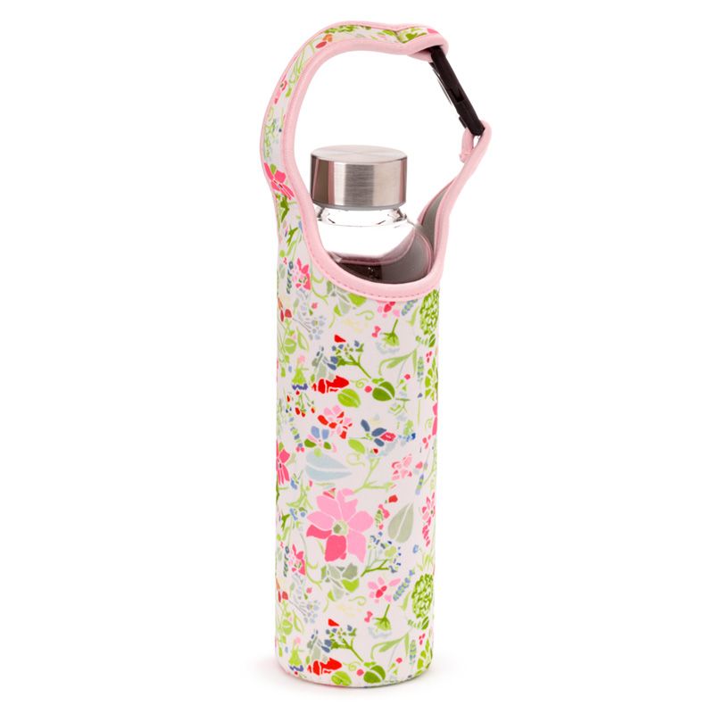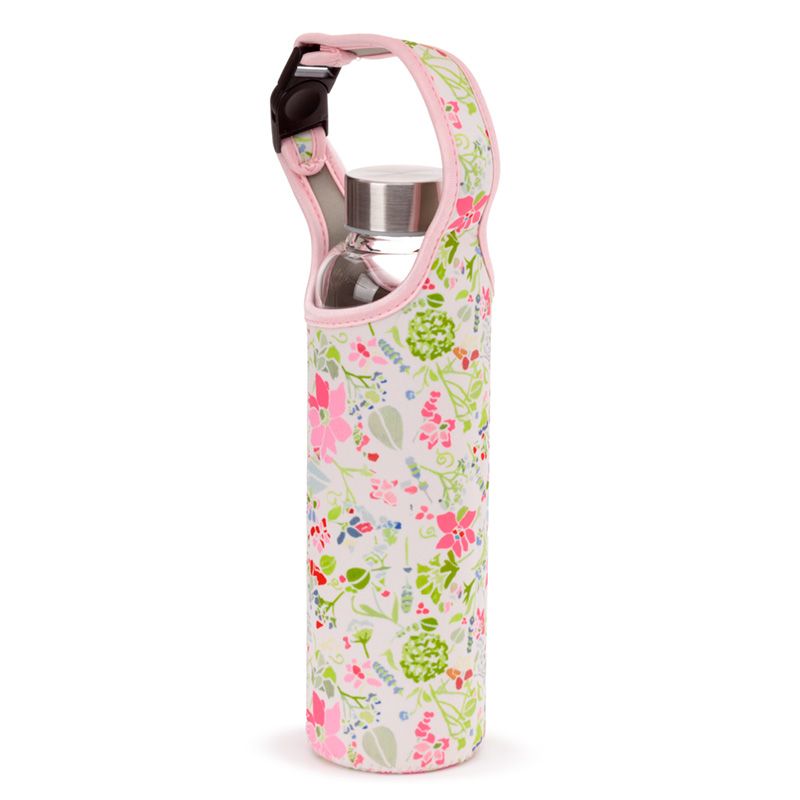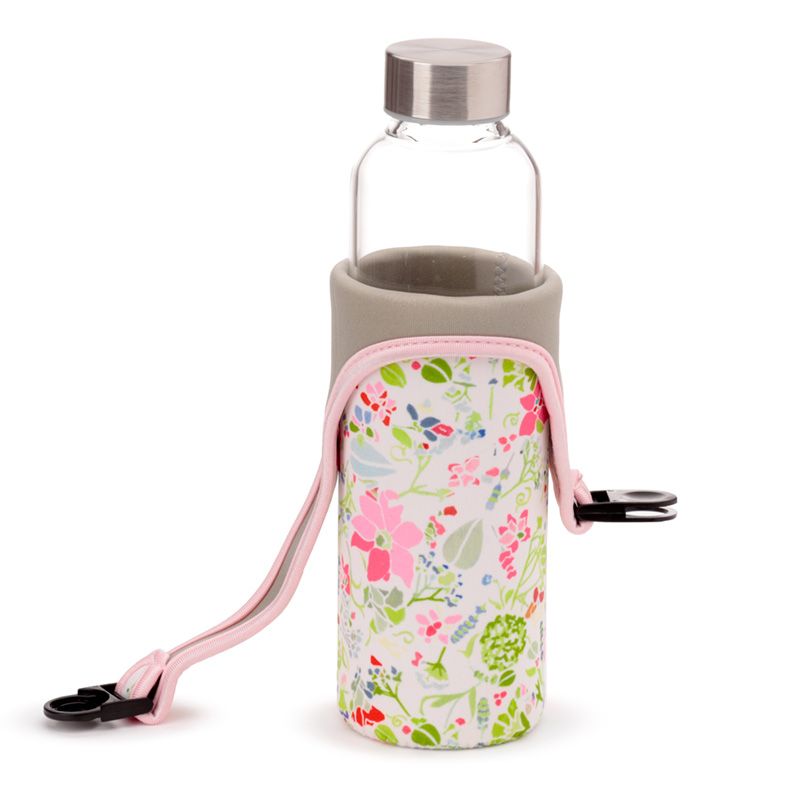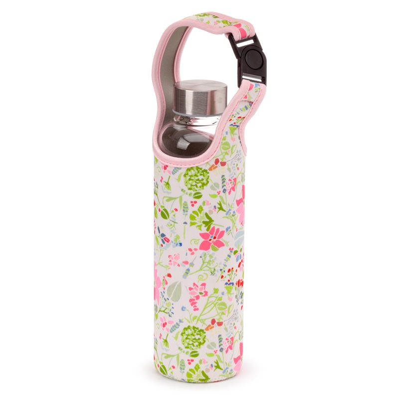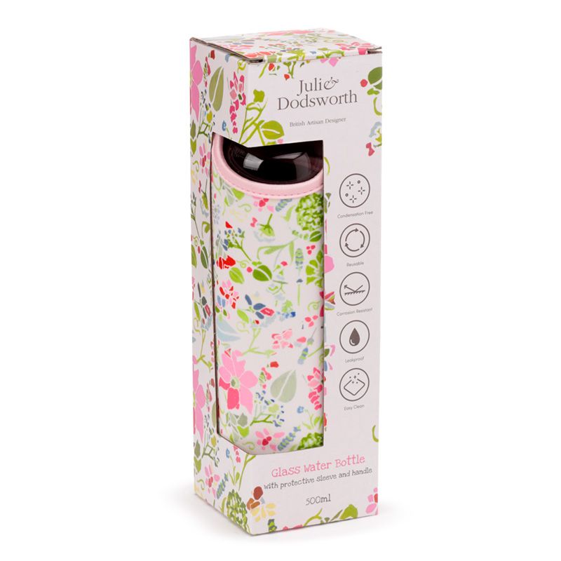 Julie Dodsworth Roze Botanisch Duurzame Glazen Waterfles Met Hoes