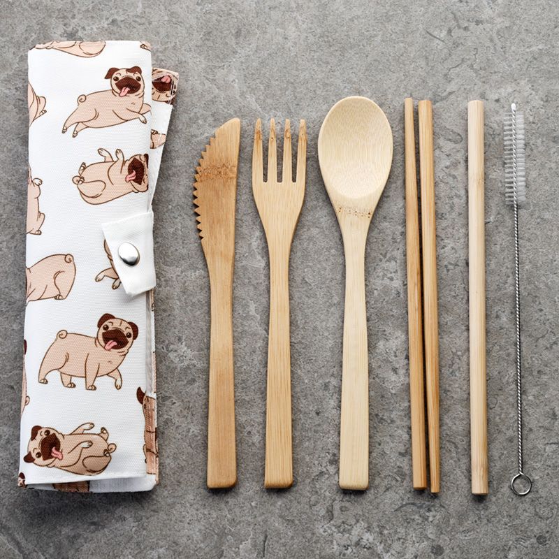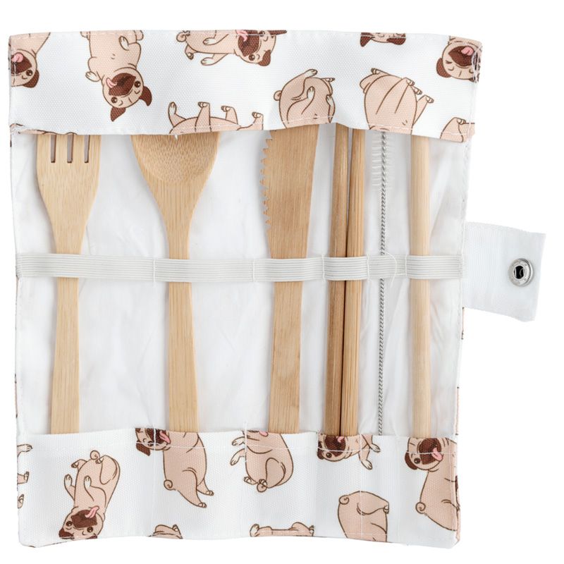 Mopshond - 100% natuurlijk bamboe 6-delige bestek set