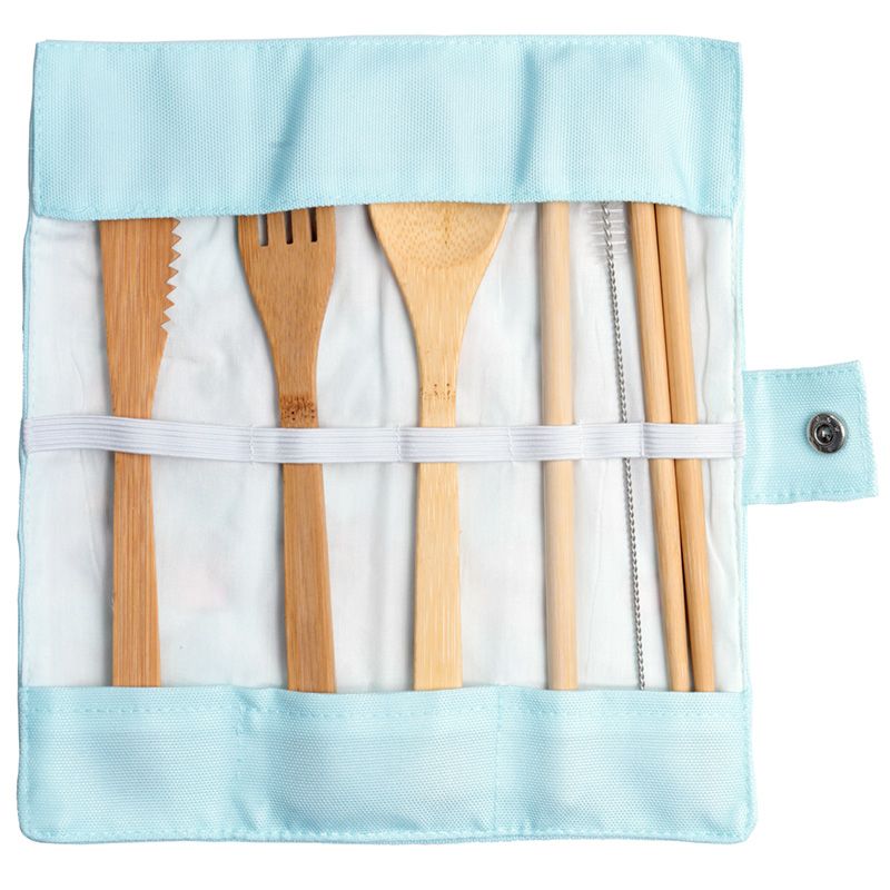 - Materiaal: 100% Bamboe bestek en rietje met een metaal- en nylon rietjesborstel en een oprolbaar canvas hoes.