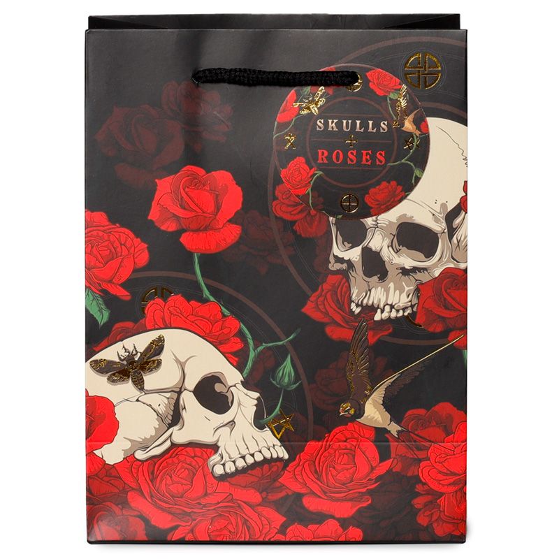 Schedel en Rozen Rode Rozen - Cadeautasje Medium