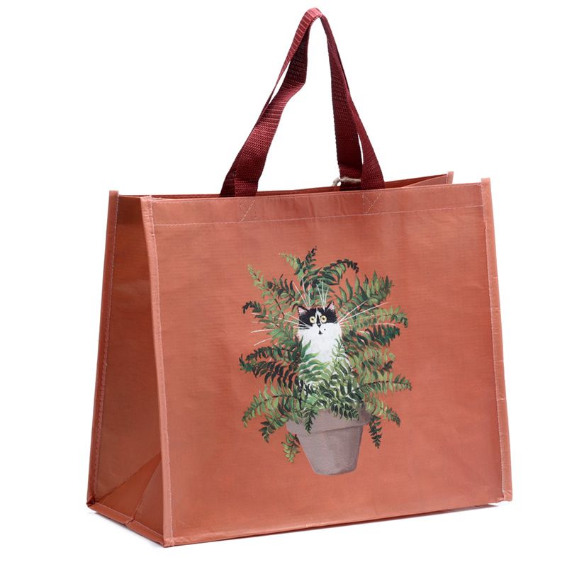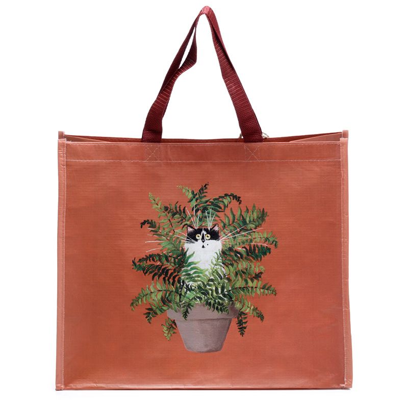 Kim Haskins Floral Cat in Varen Rood Duurzame RPET Boodschappentas